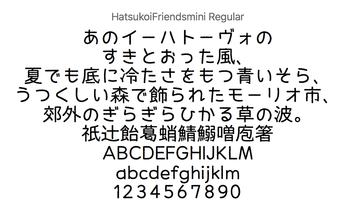 Hatsukoi Friends (初恋ふれんず) is a free font that emits the aura of a young girl experiencing the mood of first love. As you can see from the font design, it feels lightweight and feminine, and the subtle texture of the strokes kind of representing the shaky voice, the uncertainty and blushing face of a teenage girl falling in love for the first time.
