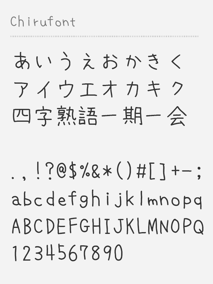 Chiru Font (ちるふぉんと) is a free handwriting font created by font creator konasan. The handwriting style is relaxing and personal….