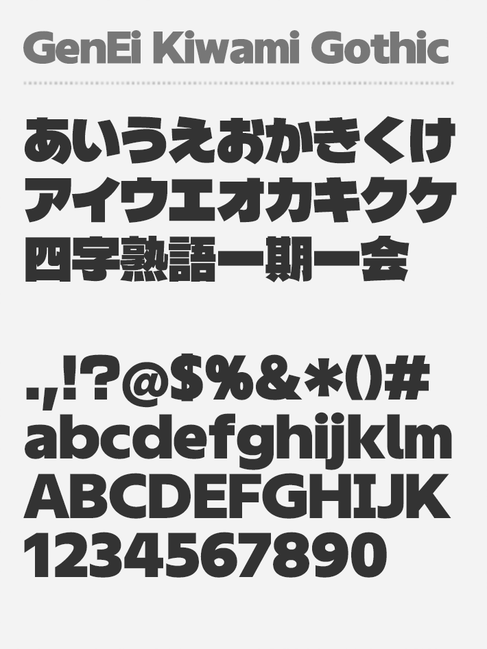 GenEi Kiwami Gothic (源暎きわみゴ) is a ultra bold free Japanese font suitable to capture all the attention you want. It…