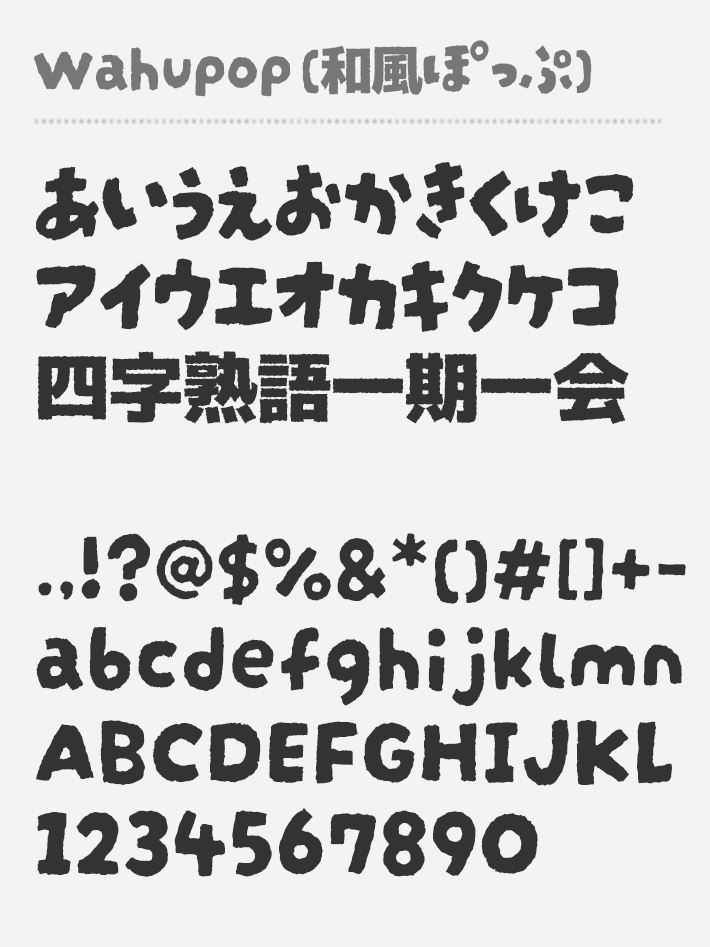 Wahupop (和風ぽっぷ) is a bold Japanese pop style display font that is free to download. It combines the characters of…